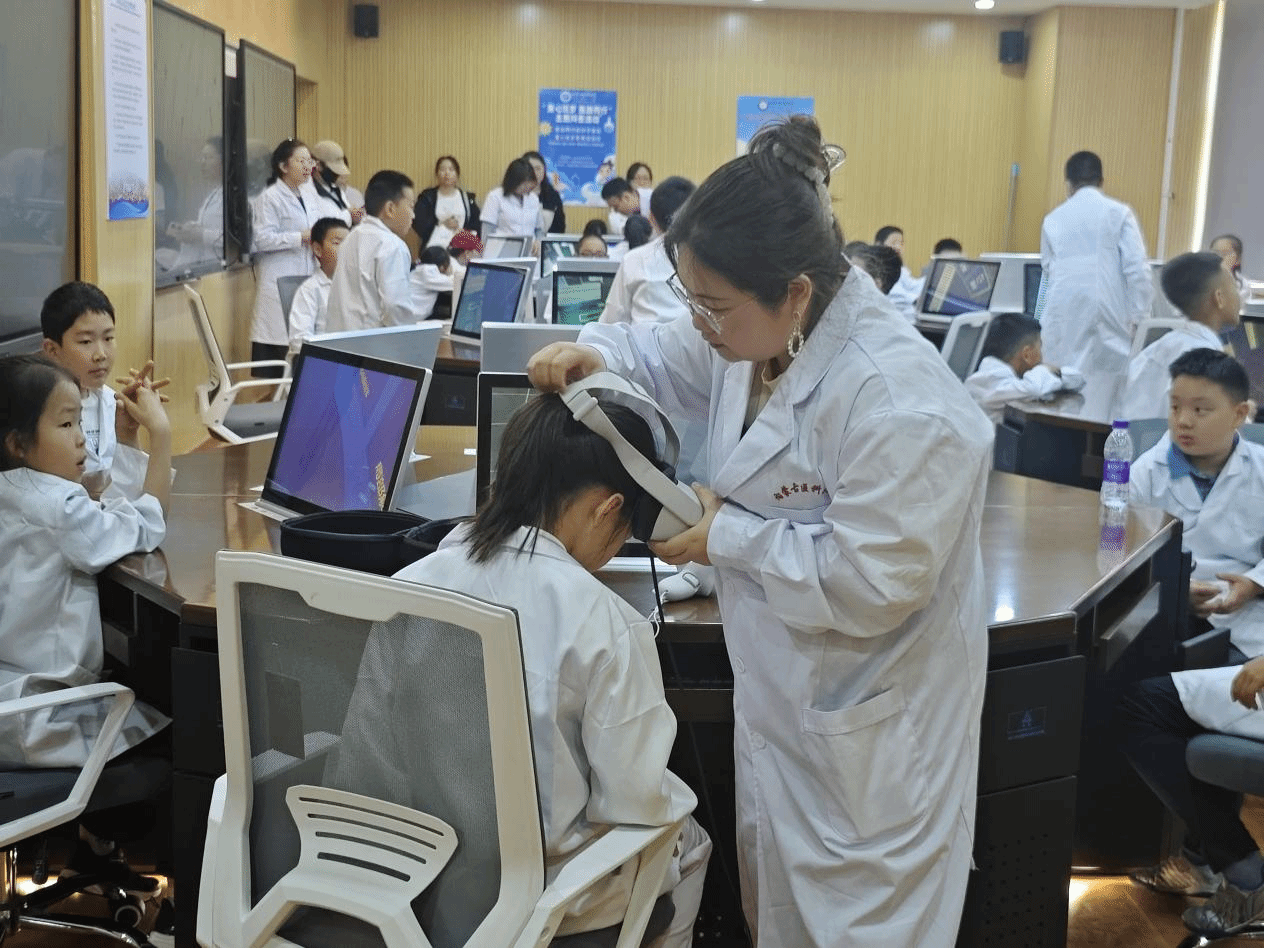 5月25日,由学校工会主办、基础医学院承办的“童心筑梦 医路同行”科普活动在金山校区举行。“医小苗”们分组参观了生物化学与遗传学实验室、病原生物与免疫学实验室,参与唾液淀粉酶实验、显微镜观察等互动项目。课程思政示范中心与蒙医学虚拟仿真实验教学中心则创新融合消化系统科普与民族团结教育,通过VR技术打造沉浸式学习场景,让科学探索与价值观培养同频共振。