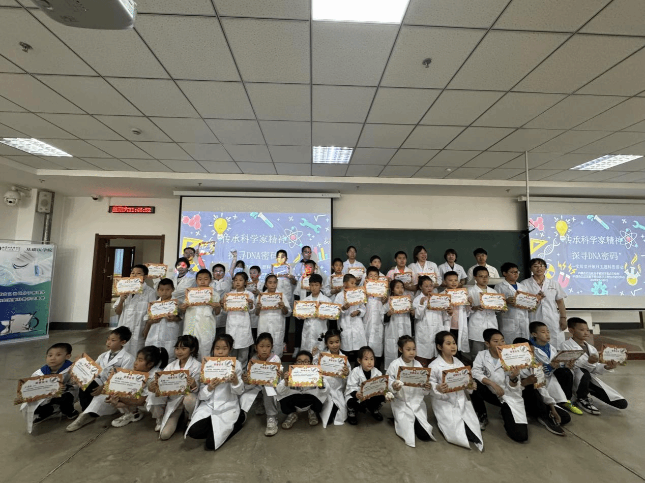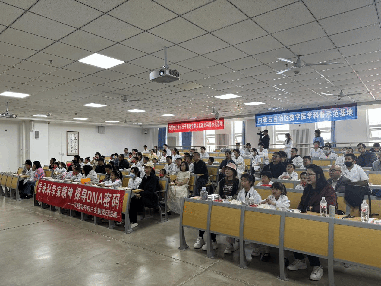 5月24日,基础医学院第八党支部联合内蒙古自治区分子病理学重点实验室、自治区数字医学转化工程技术中心科普示范基地,举办“传承科学家精神 探寻DNA密码”主题党日暨科普活动。活动以“科学家精神传承”为开篇,分子病理学重点实验室主任肖瑞以“一粒追梦的种子——科学家钟扬老师的精神珠峰”为题,讲述了植物学家钟扬扎根西藏、献身科研的感人事迹,在科普实践环节,孩子们在科研人员指导下完成“香蕉DNA提取”“洋葱表皮细胞染色观察”等实验,将抽象的生命科学知识转化为触手可及的实践体验。活动还安排了实验室参观,参与者走进科研一线,近距离接触先进设备,感受严谨的科研氛围。