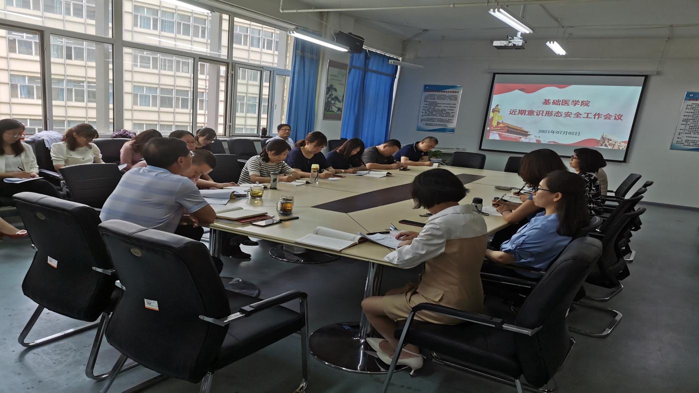 7月2日下午,基础医学院党委在B座4楼会议室召开了学院意识形态安全工作会议,学院党委委员、各党支部书记及委员、各科室主任参会,会议由学院党委书记李志明主持。