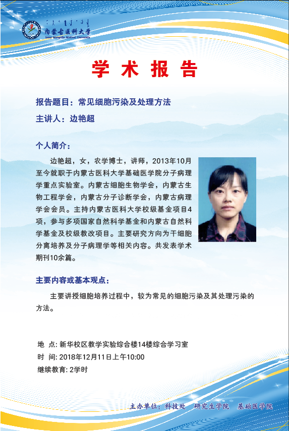 讲座地点:内蒙古医科大学新华校区教学实验综合楼学习室