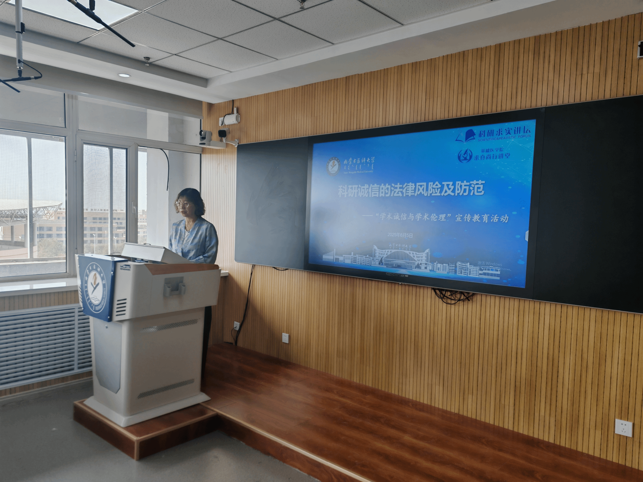 为进一步落实学校关于科研诚信建设及提升科研工作者学术道德素养的要求,基础医学院举办“科研诚信与科技伦理”宣传教育活动——“科研诚信的法律风险及防范”专题讲座,本次讲座邀请到了内蒙古农业大学人文社会科学学院李二桃教授,就高校科研诚信的具体范围和法律风险等方面的内容进行深入剖析和讲解。内蒙古医科大学科研处吴七柱副处长参加了本次活动。