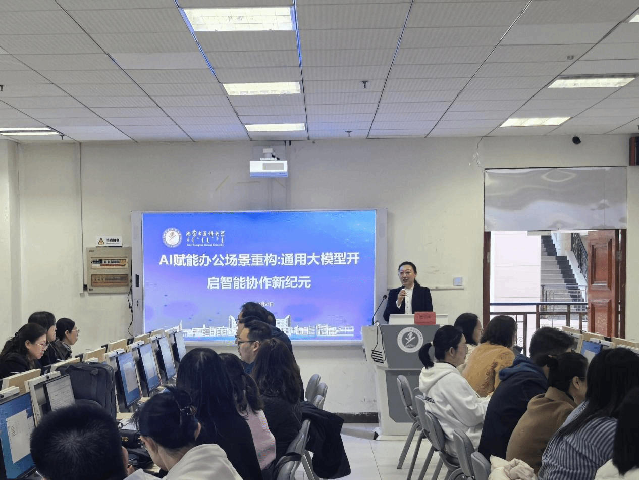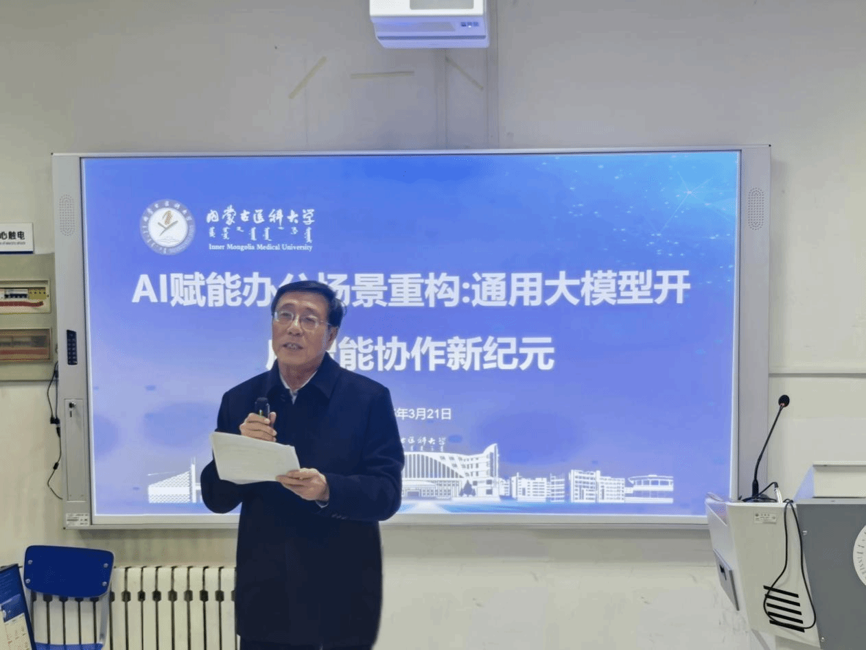 2025年3月21日,基础医学院联合计算机信息学院在金山校区图书馆计算机2号机房成功举办了主题为“AI赋能办公场景重构:通用大模型开启智能协作新纪元”的教师班。基础医学院党委书记李志明、计算机信息学院院长宁鹏飞出席开班仪式,基础医学院和计算机信息学院部分教师参加培训。计算机信息学院党总支副书记、副院长苑宁萍主持开班仪式。