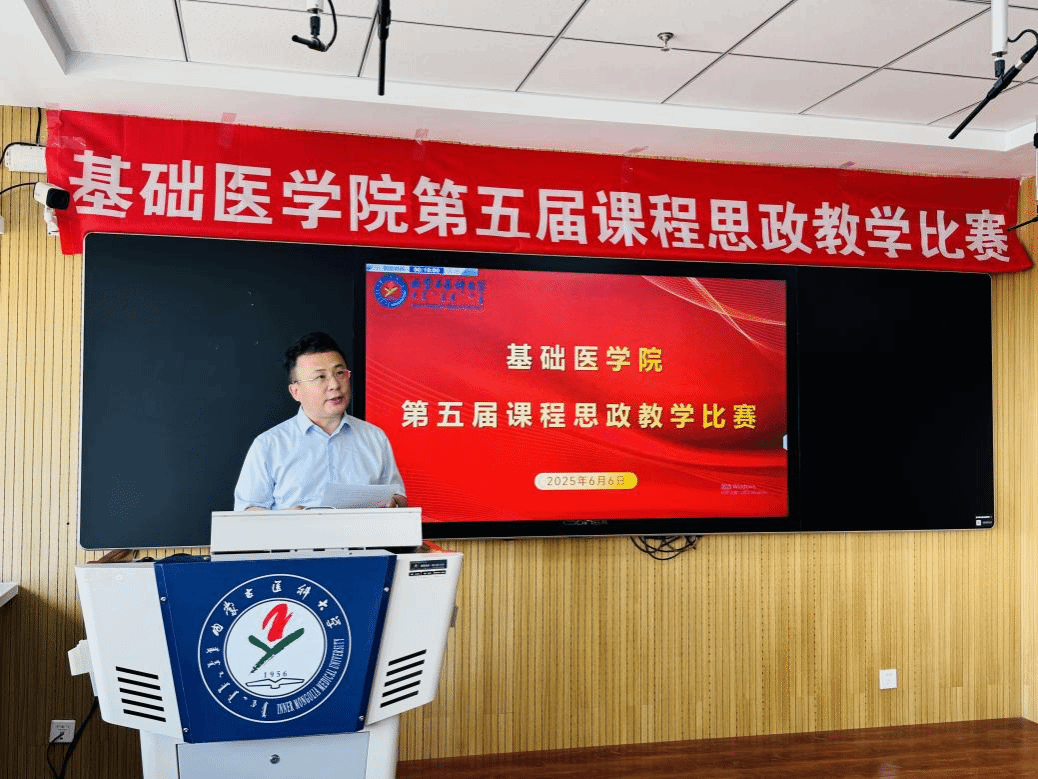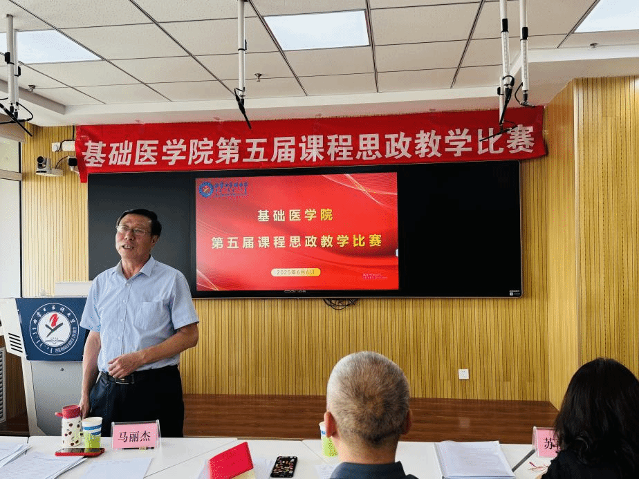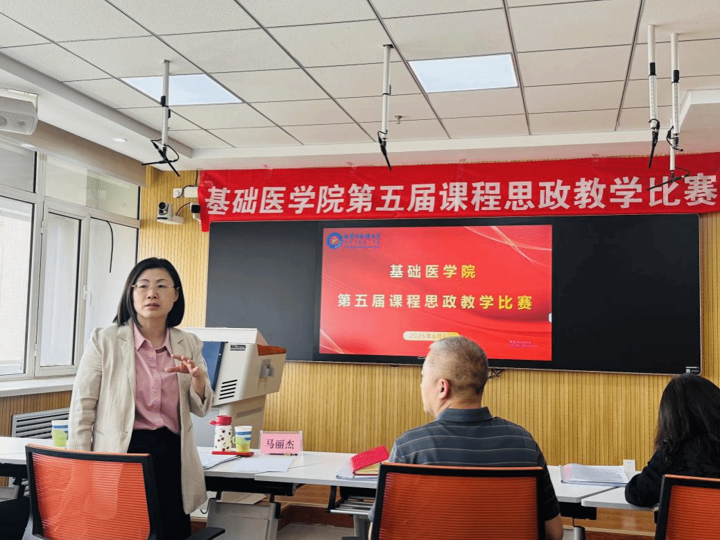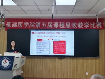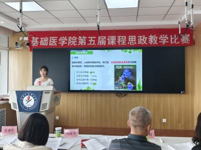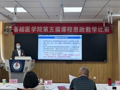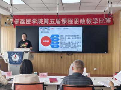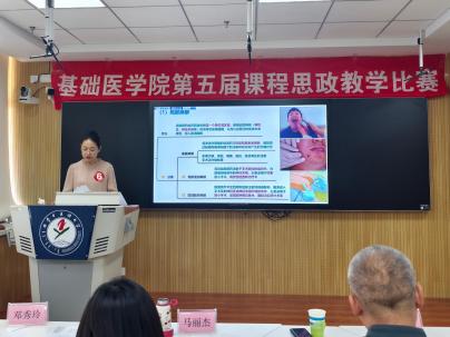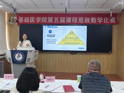 为贯彻落实全国教育大会会议精神,发挥以赛促教的示范带动作用,全面提升教师课程思政教学能力。基础医学院于2025年6月6日在金山校区A座教师工作坊举办了第五届课程思政教学比赛。比赛由学院副院长马月宏主持,部分教师进行现场观摩学习。