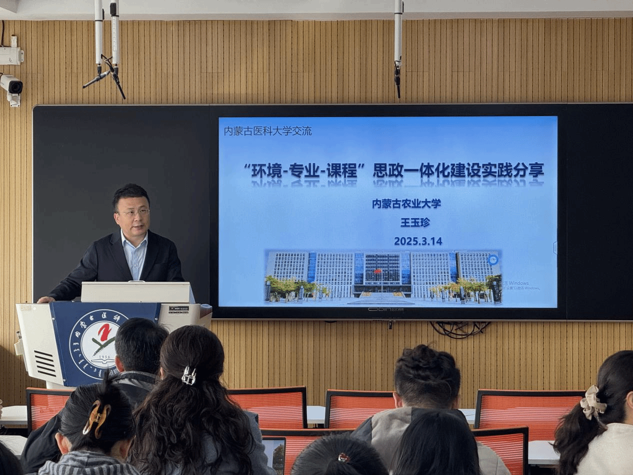为推进课程思政建设,促进院校合作,加强学术交流,2025年3月14日,基础医学院邀请内蒙古农业大学生命科学学院教学副院长王玉珍教授在其端楼6楼教师工作坊进行题为“‘环境--专业--课程思政’一体化设计和实践”专题讲座并在讲座后开展交流座谈。基础医学院副院长马月宏教授主持会议,学院骨干教师、青年教师参会。