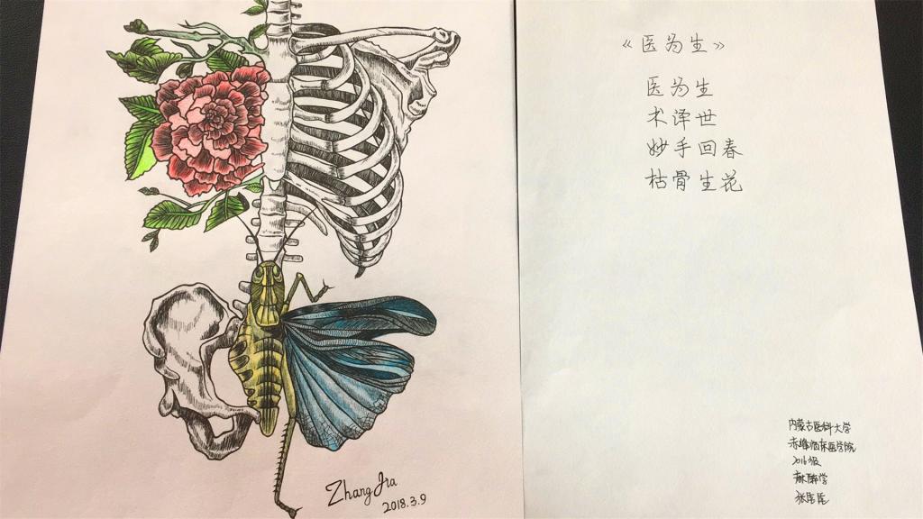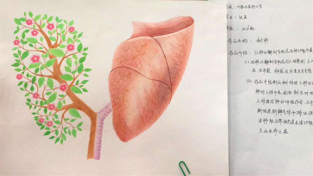 通过领导、老师们认真、专业的评审,最终推选出15份优秀作品参加全国比赛。此次比赛激发了同学们的想象力,丰富了课余生活。每辐作品都体现了解剖结构与绘画灵感的激情碰撞,线条勾勒清晰,表达淋漓尽致,专业交织兴趣,是医学与艺术的完美结合。